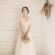 ナチュラルなコットン素材と手仕事の美しい刺繍が施されたレースがよりナチュラルな花嫁を作りあげ ます。 全体的にスッキリとしたシルエットとは逆に、足元のボリューミーな段々フリルはインパクトを与えま す。