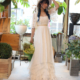 チュールプリーツでスッキリと仕上げられたトップスは、柔らかな曲線が、デコルテラインを美しく演出してくれます。そし て、流れる様なフリルが重なったスカートラインは風を受ける度に変化を与え色々な表情を見せてくれます。 色違いでカラードレスもあり、人気の高い一着。