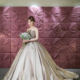 何色ものパープルのグラデーションとふんだんに使われた柔らかなチュールがバランスのいいボリュー ム感を出してくれるドレス。